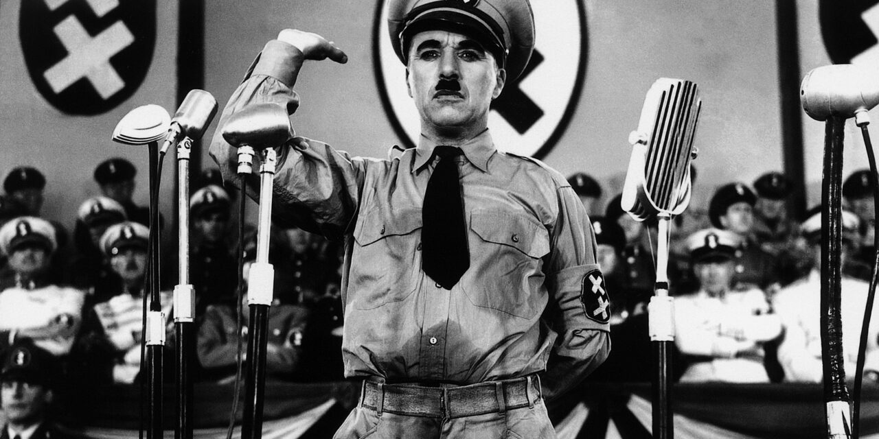 Charlie Chaplin nei panni di Adenoid Hinkel nel film Il Grande Dittatore (1940).